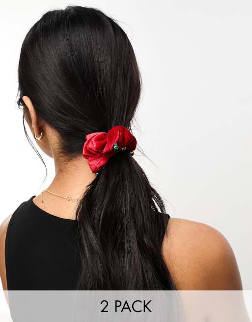 Pieces 2 pack velvet scrunchies with bells in red & green