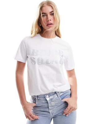 Pieces 'Bride Squad' Silver glitter front slogan t-shirt in white