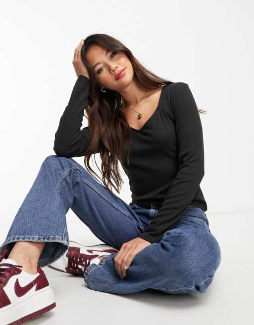 Pieces cabiola heart neck top in black