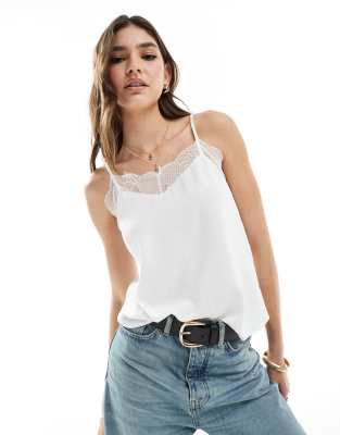 Pieces cami top with lace trim detail in white