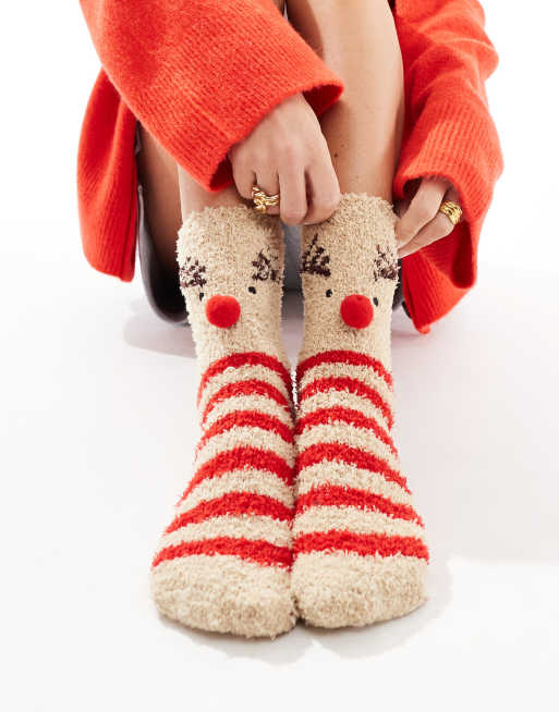 Pieces Christmas gift boxed reindeer fluffy socks in beige