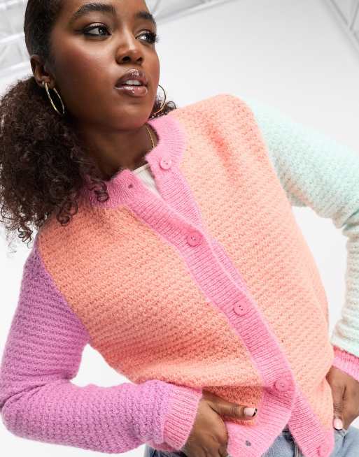 Pieces colourblock cardigan in multi