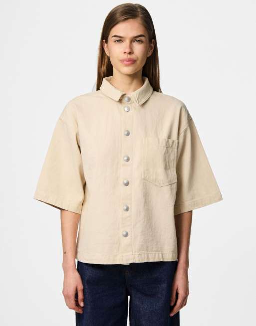 Pieces Denim shirt in beige denim