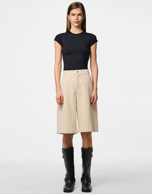 Pieces Denim shorts in beige denim