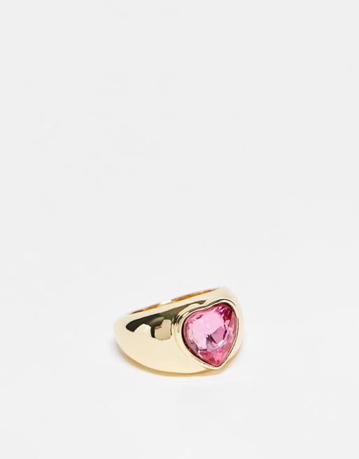 Pieces exclusive Valentines oversized diamante heart sovereign ring in pink