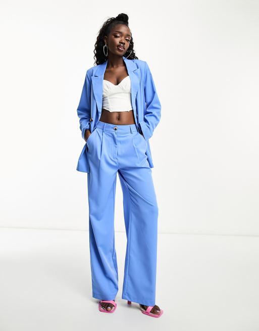 Pieces high waisted wide leg tailored trousers co-ord in blue