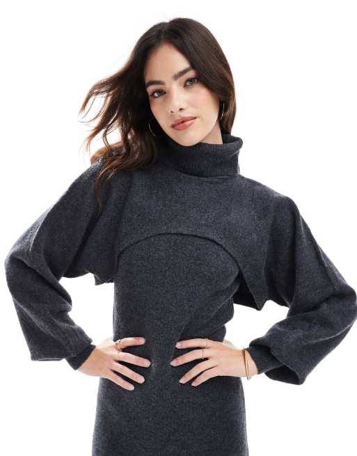 Pieces knitted roll neck cropped jumper co-ord in charcoal