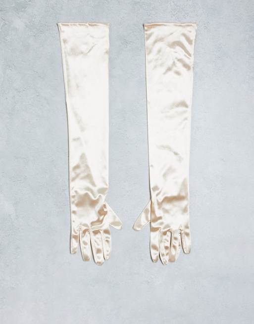 Pieces long satin gloves in gold