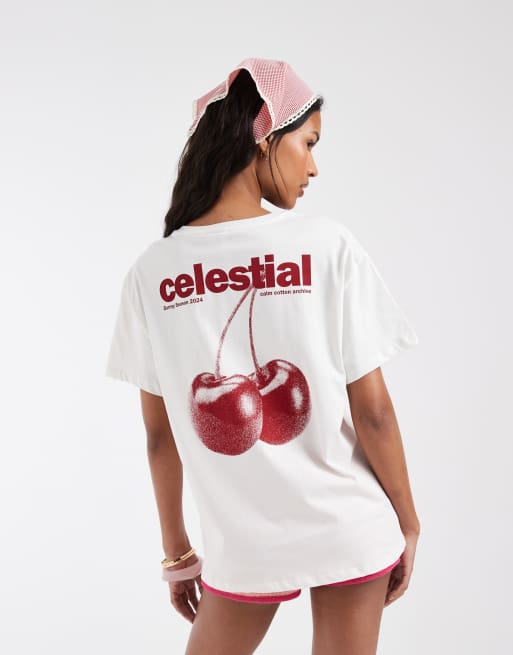Pieces oversized celestial cherry graphic t-shirt in white