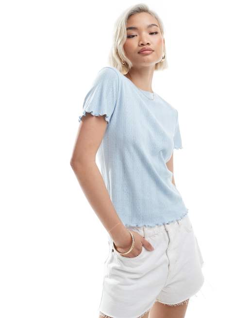 Pieces pointelle t-shirt with baby lock detail in light blue