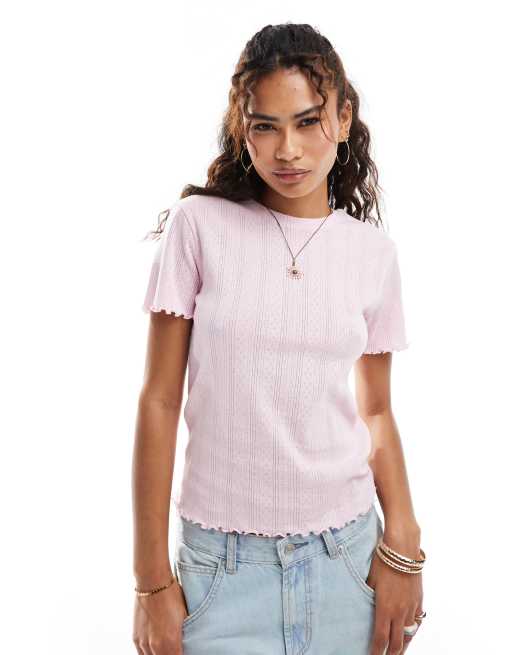 Pieces pointelle t-shirt with baby lock detail in roseate pink