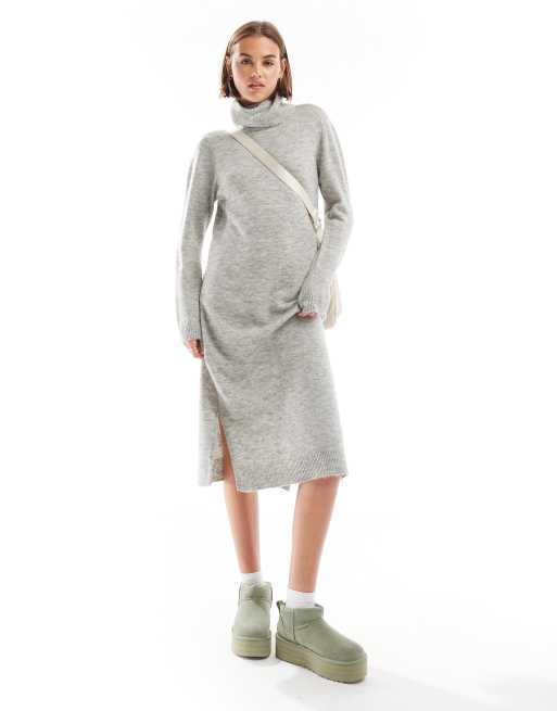 Pieces roll neck maxi jumper dress in light grey melange
