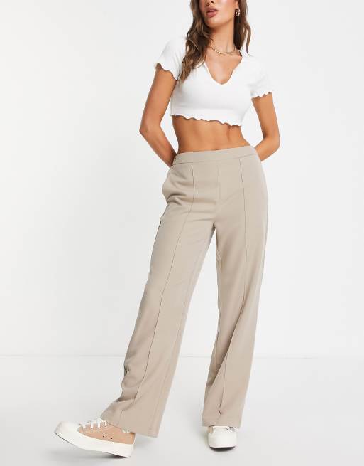 Pieces seam detail wide leg trousers in beige