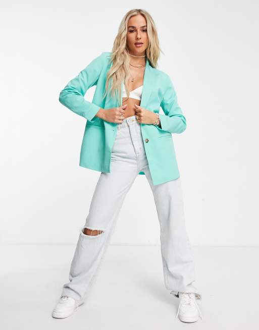 Pieces tailored blazer in turquoise