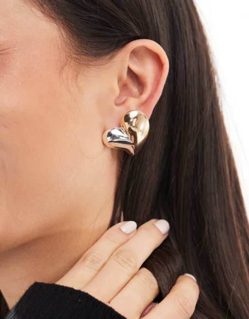 Pieces two tone heart earrings in gold and silver