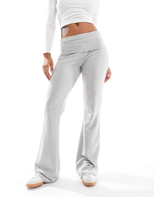 Pieces wellness fold over flared yoga style leggings in light grey melange