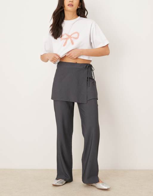 Pimkie 2 in 1 tie side skirt and straight leg trouser in grey