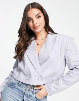 Pimkie cropped double breasted blazer and mini skirt co-ord in grey