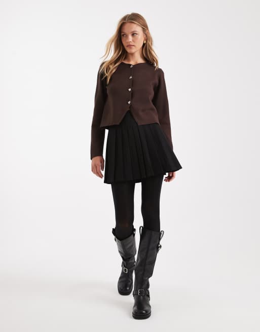 Pimkie high waisted pleated hem skater mini skirt in black