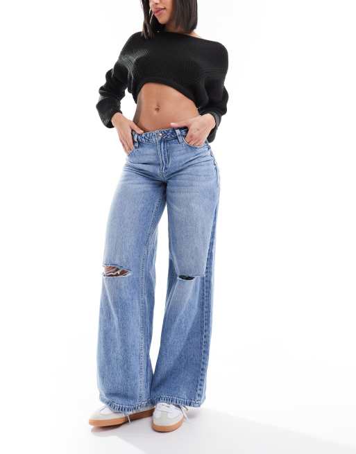 Pimkie mid rise baggy ripped jeans in light blue wash