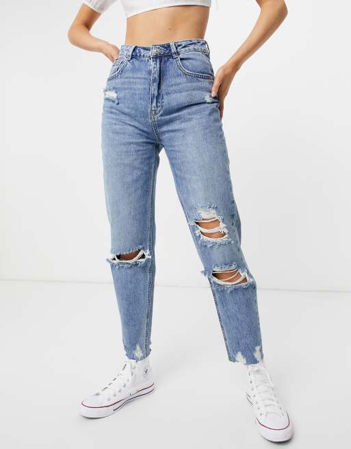 Pimkie mom jean with rips in blue