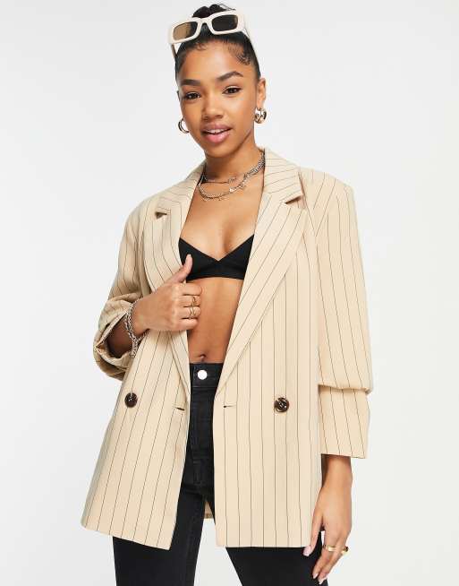 Pimkie oversized blazer in camel pinstripe co-ord