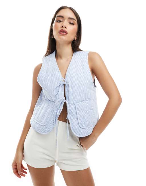 Pimkie quilted tie front waistcoat in blue stripe