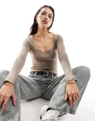 Pimkie sweetheart neckline jumper in brown