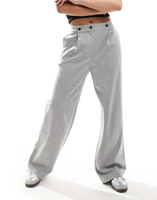 Pimkie tailored adjustable waist straight leg trouser in light grey