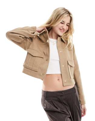 Pimkie wool look pocket detail jacket in taupe