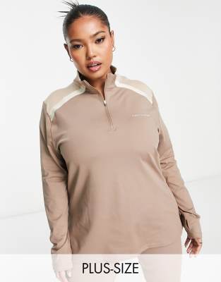 Pink Soda Plus 1/4 zip long sleeve top in taupe