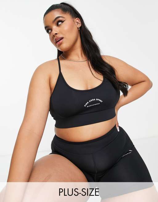 Pink Soda Plus rib insert medium support sports bra in black