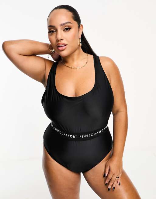 Pink Soda Sport Plus polyester blend Opal tape swimsuit in black