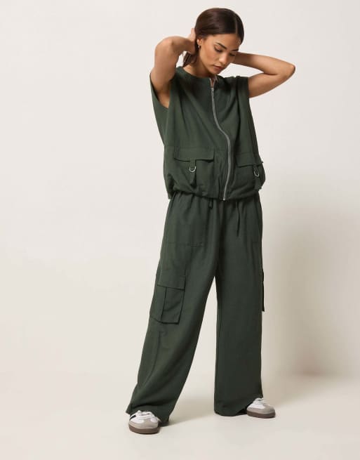 PixieGirl Petite cargo wide leg trousers in green