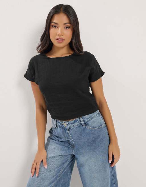 PixieGirl Petite lace up cheesecloth top in black
