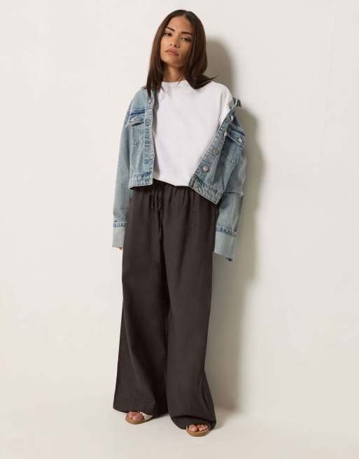 PixieGirl Petite linen wide leg trousers in brown