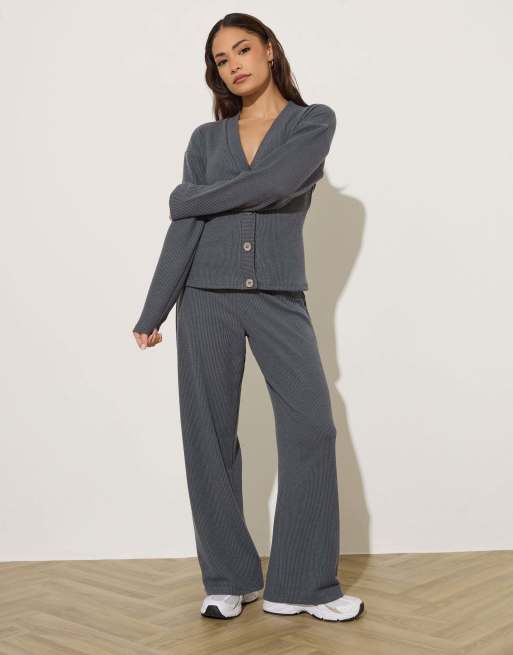 PixieGirl Petite textured wide leg trousers in grey