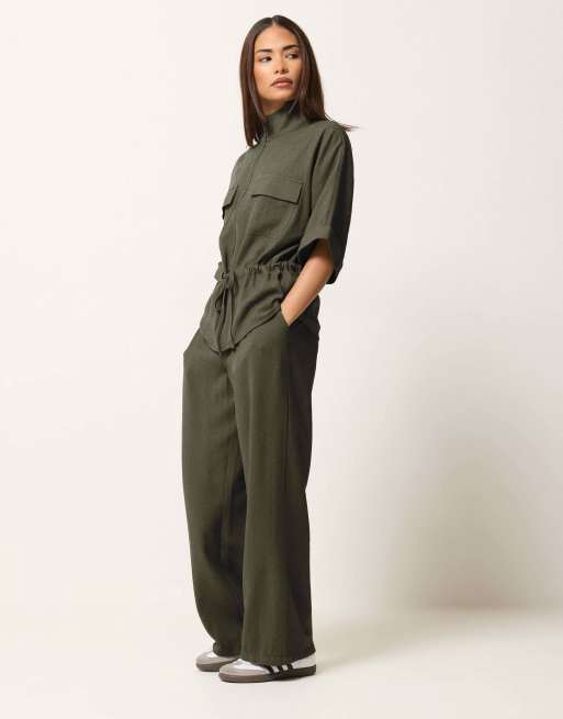 PixieGirl Petite wide leg trousers in green