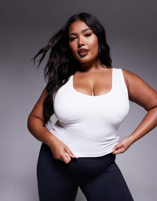 4505 – Biały bezszwowy podkoszulek z dekoltem w szpic i wewnętrznym biustonoszem