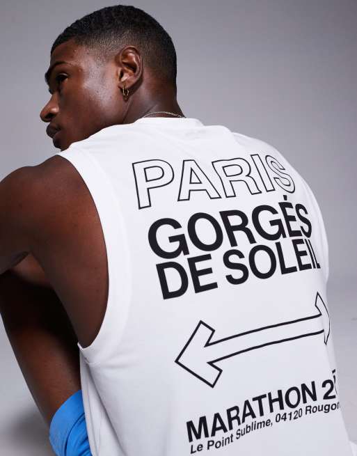 4505 – Biały szybkoschnący top bez rękawów do biegania z dżerseju z grafiką na plecach