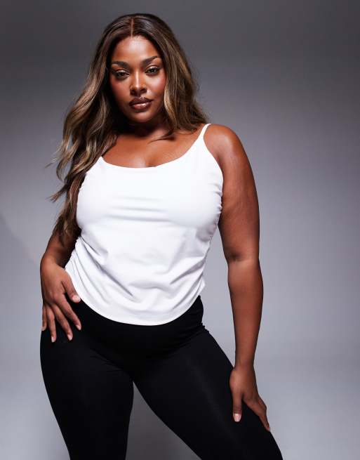 4505 Curve – Biały miękki top na ramiączkach z marszczonymi bokami i wbudowanym biustonoszem