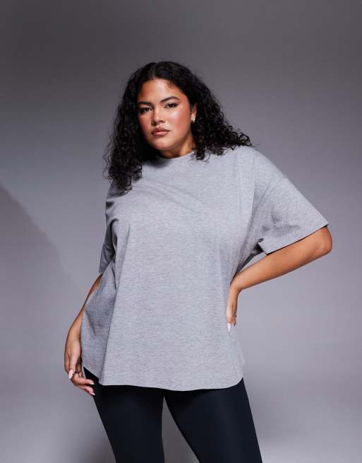 4505 Curve – Icon – Szary melanżowy T-shirt oversize z grubej, szybkoschnącej bawełny