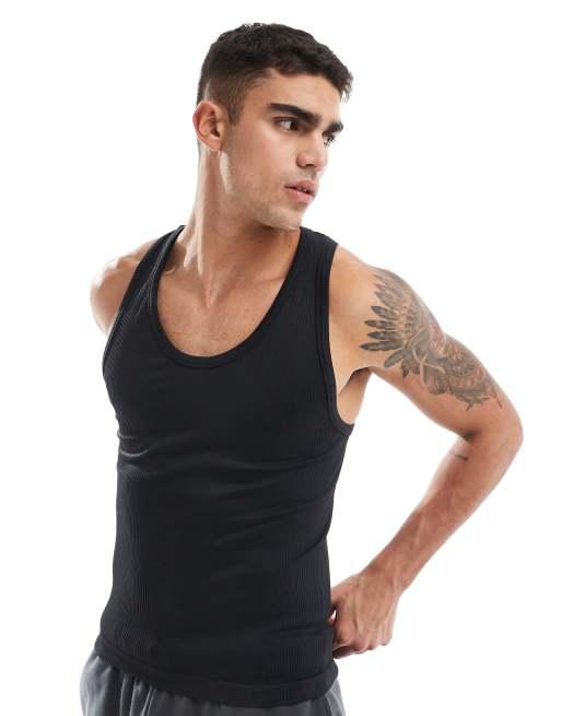 4505 – Czarny bezszwowy prążkowany podkoszulek sportowy o fasonie bokserki