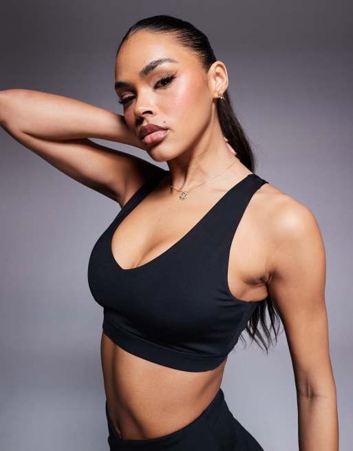 4505 – Czarny biustonosz sportowy do średniointensywnych ćwiczeń o kroju bokserki