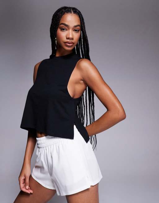 4505 – Czarny szybkoschnący krótki podkoszulek bawełniany z głębokimi otworami pod pachami