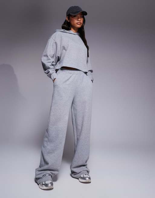 4505 – Grube szybkoschnące joggersy sportowe z szerokimi nogawkami w szarym melanżowym kolorze