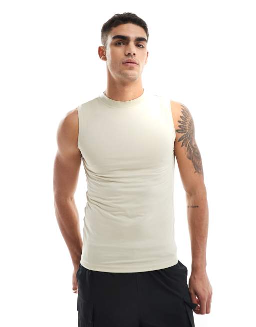 4505 – Icon – Szarobeżowy podkreślający sylwetkę top treningowy bez rękawów