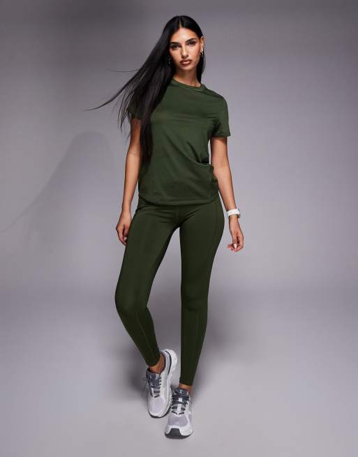 4505 – Icon – Wiązane w talii legginsy do biegania w kolorze khaki z kieszenią na telefon