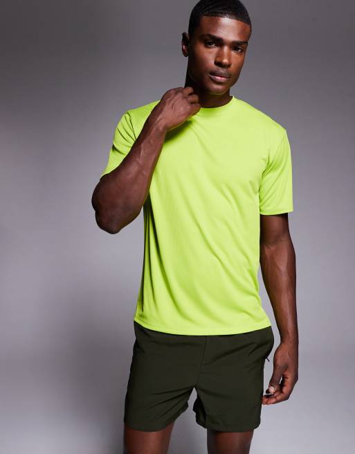 4505 – Jaskrawozielony szybkoschnący T-shirt do biegania o luźnym kroju z siateczki technicznej