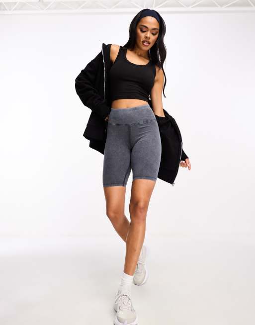 4505 – Krótkie bawełniane legginsy o długości 20 cm w spranym szarym kolorze
